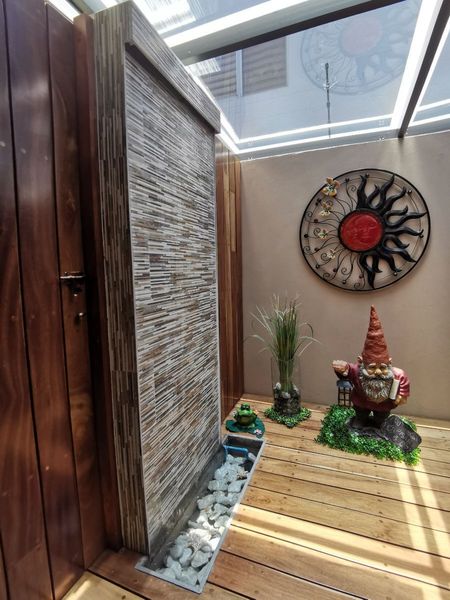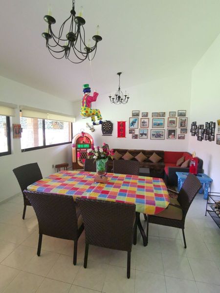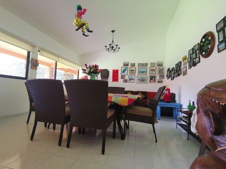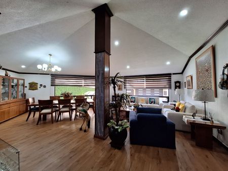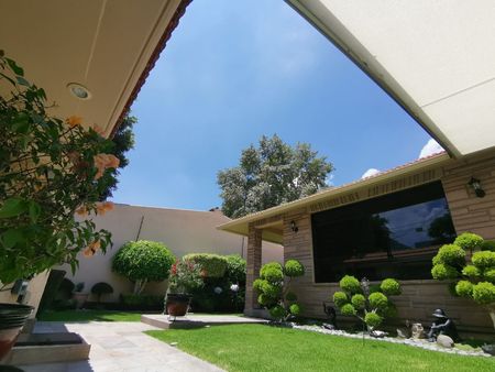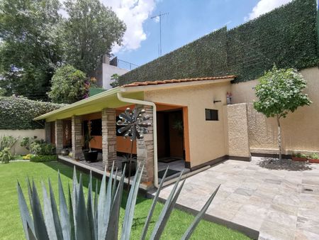 Lista para habitarse. Cómoda casa de una sola planta. Espacios amplios y bien iluminados. Estilo Californiano Contemporáneo. Sala/comedor corridos, cocina con antecomedor. 3 recámaras, cada una con baño completo y vestidor. Cuarto de TV. El jardín es muy grande, cuenta con riego por aspersión automático. Al fondo del jardín tiene un salón de juegos con baño completo que fácilmente puede se un departamento independiente. Además un despacho. Todas las áreas de la casa tienen vista a los jardines.